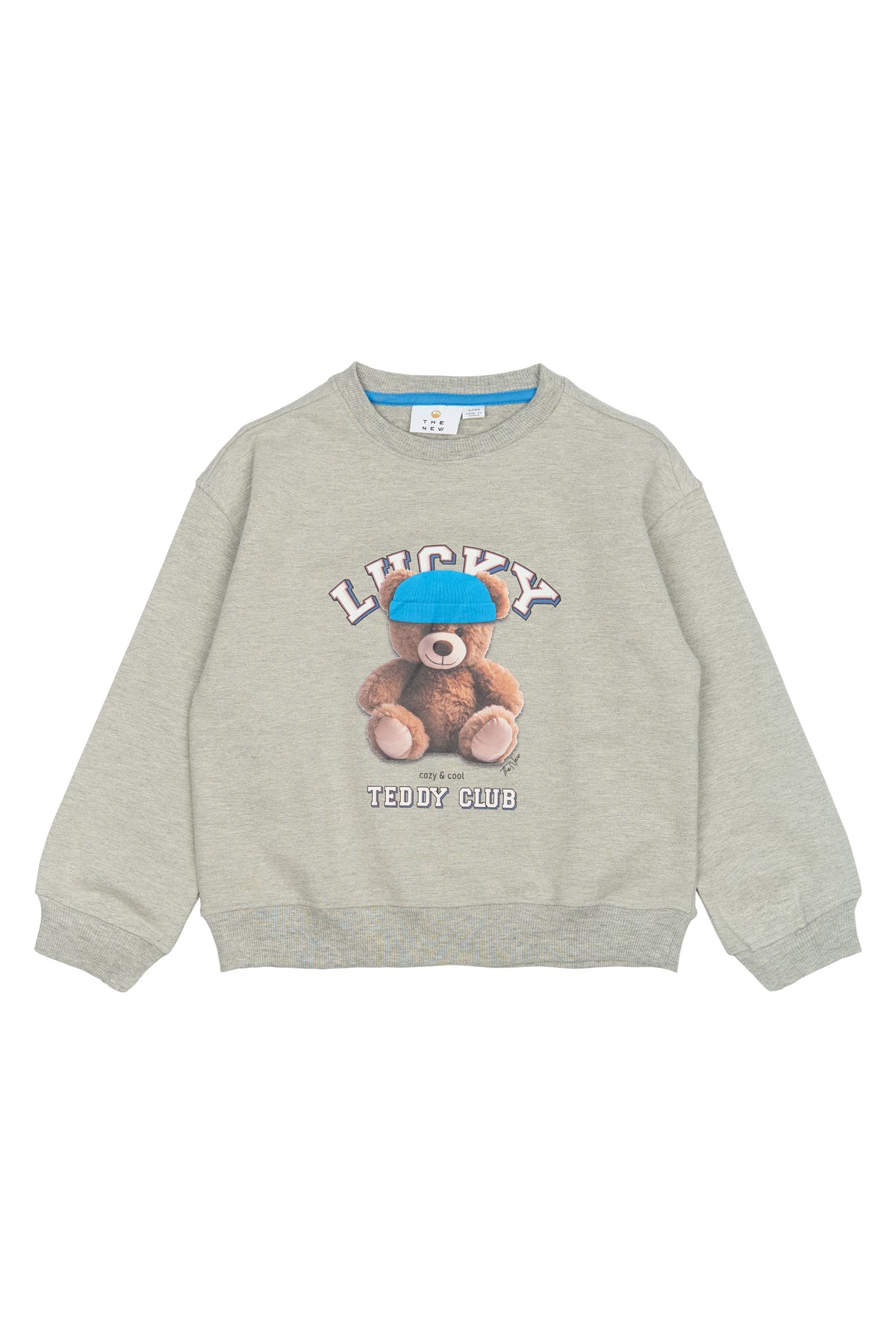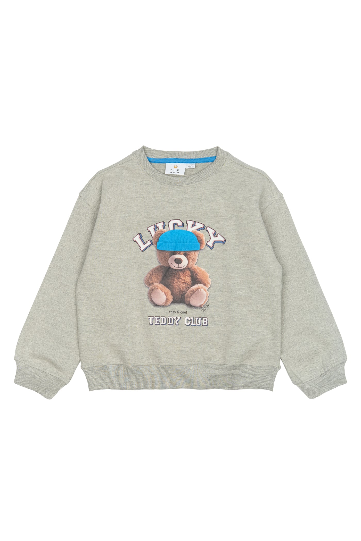 Hoe schattig én stoer tegelijk kan een trui zijn? Dit grijze sweatshirt van The New heeft een zachte, comfortabele fit en is voorzien van een té leuke teddybeerprint met de tekst Lucky Teddy Club. De blauwe beanie van de beer geeft de sweater een speelse twist die kids meteen aanspreekt.