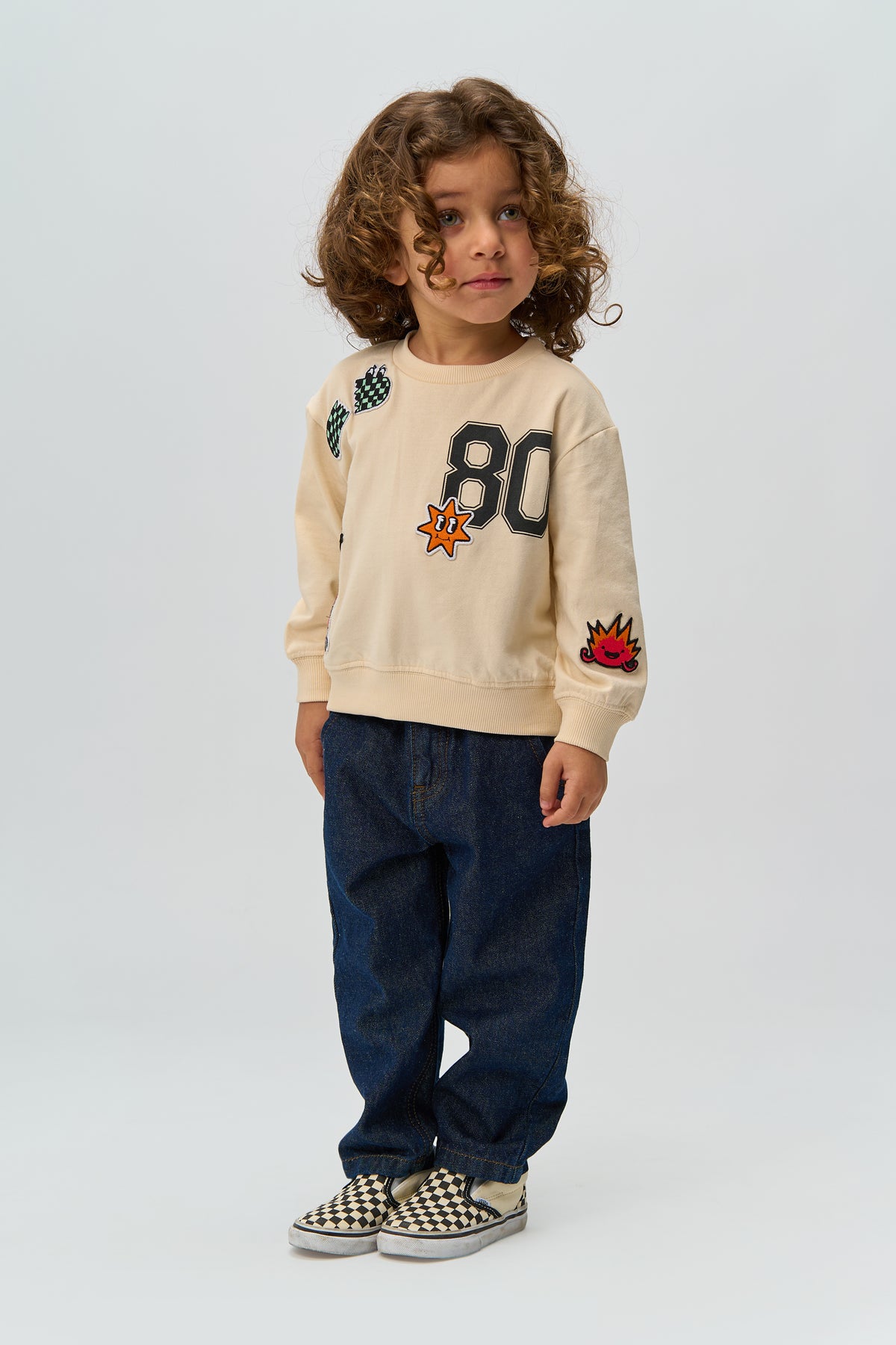 De Raymond OS Sweatshirt van The New Siblings is fun, speels en supercomfortabel! 😎 Deze zachte trui in Gardenia (crème) is versierd met vrolijke, geborduurde patches — van een stoere krokodil tot een lachende zon en grappige figuurtjes.