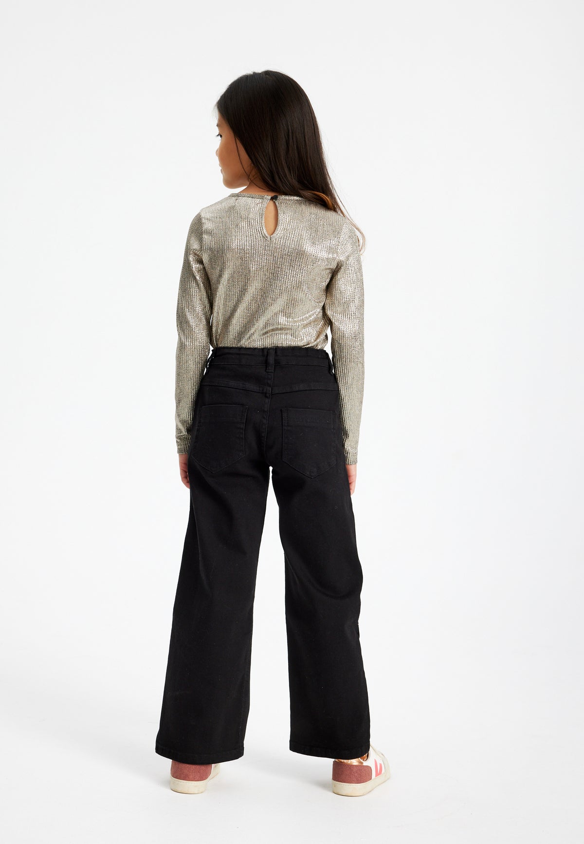 Stijlvolle meisjesjeans met wijde pijpen. Deze jeans zijn een klassieker in je garderobe en passen goed bij de meeste outfits....