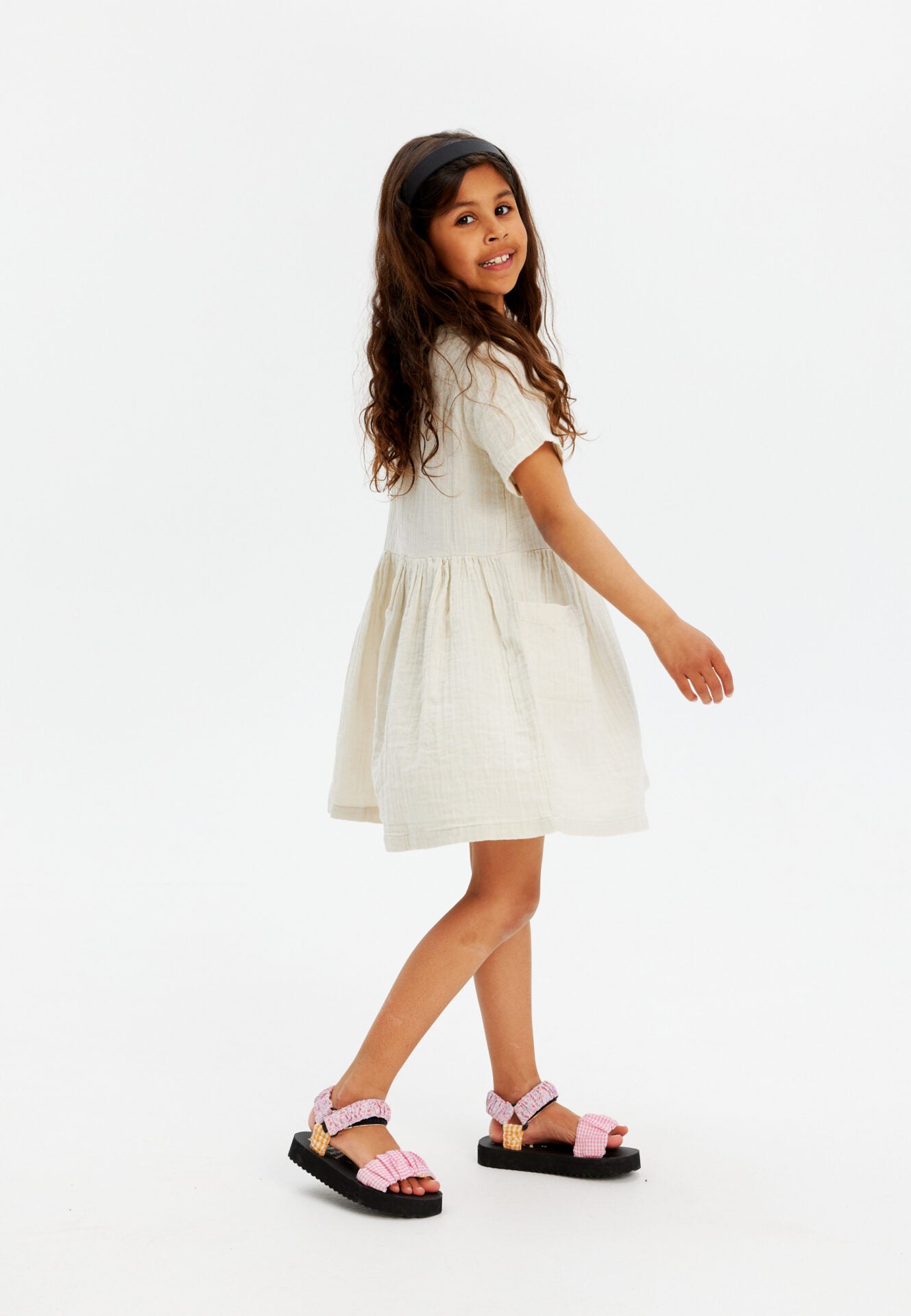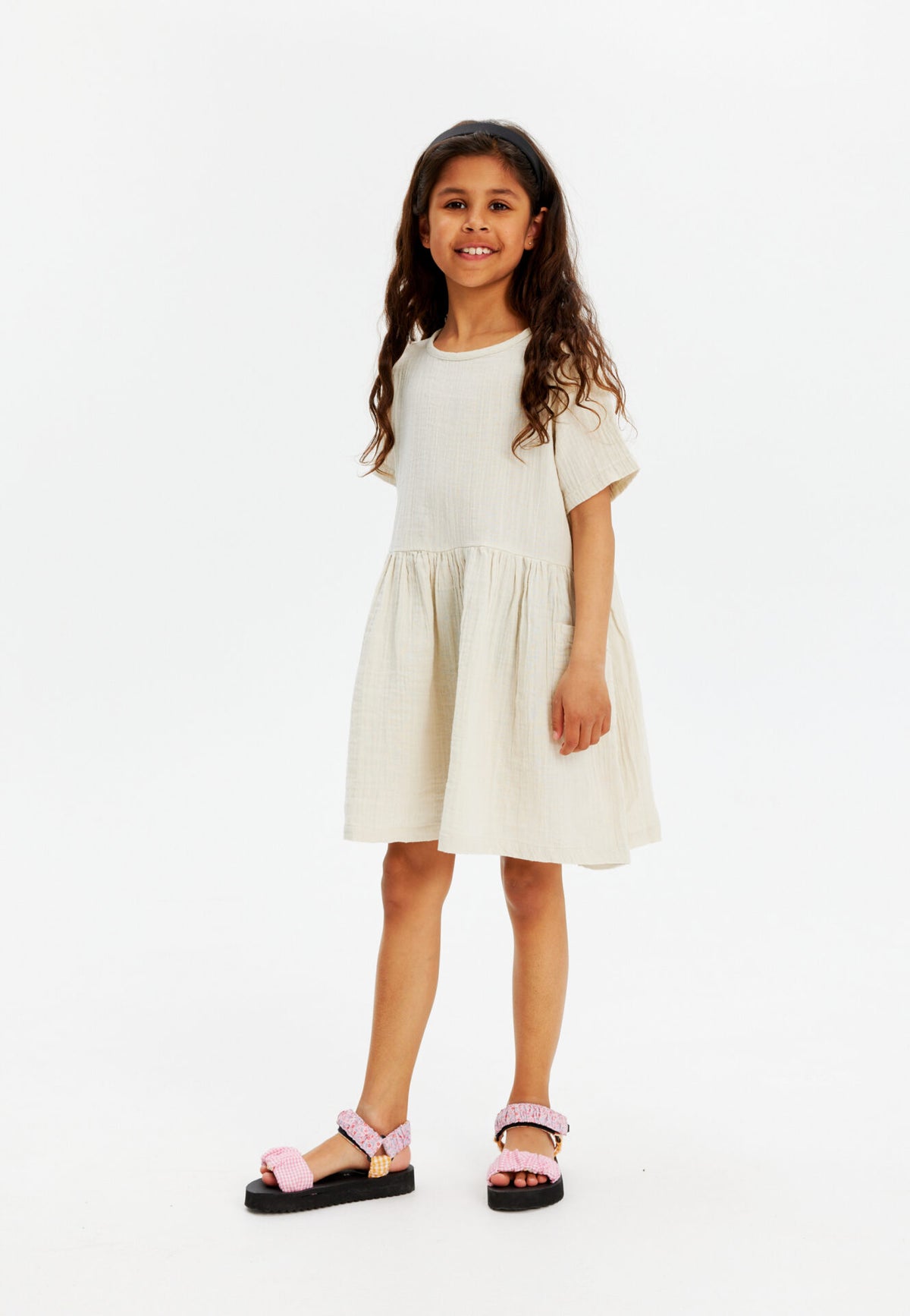 Effen gekleurde casual katoenen jurk van THE NEW, ontworpen met korte mouwen en zakken. Deze jurk is gemaakt van zacht, praktisch en lichtgewicht katoen en heeft een losse pasvorm. Hij is gemakkelijk aan te trekken en biedt voldoende bewegingsvrijheid, waardoor hij perfect is voor dagen met hoge temperaturen. Je kunt hem ook over een mooie blouse met lange mouwen dragen voor extra veelzijdigheid. Deze jurk is geschikt voor dagelijks gebruik, maar kan ook worden gestyled voor lente- en zomerfeesten en speciale gelegenheden.